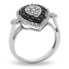 You are a sophisticated and classy woman, so don't be afraid to wrap your finger in a magnificent cocktail ring. Providing an eye-catching vision, the pear-shaped center features white diamonds glowing perfectly within a double outline of enhanced black and white diamonds. Together, these diamonds total of lovely 1/2 ct. Draw in a crowd with this sterling silver treat. This ring is only available in size 7. Sterling silver rings cannot be resized after purchase